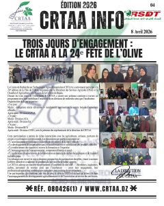 Dans le cadre du Salon national des fromages et produits laitiers destinés à l’exportation, organisé à Tizi Ouzou du 11 au 15 avril 2026, le CRTAA a marqué sa présence […]
