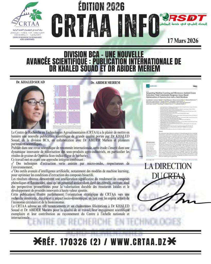 Dans le cadre des actions d’optimisation et de réorganisation des espaces expérimentaux au sein de la division AVRA, une opération technique a été menée avec succès les 25 et 26 […]